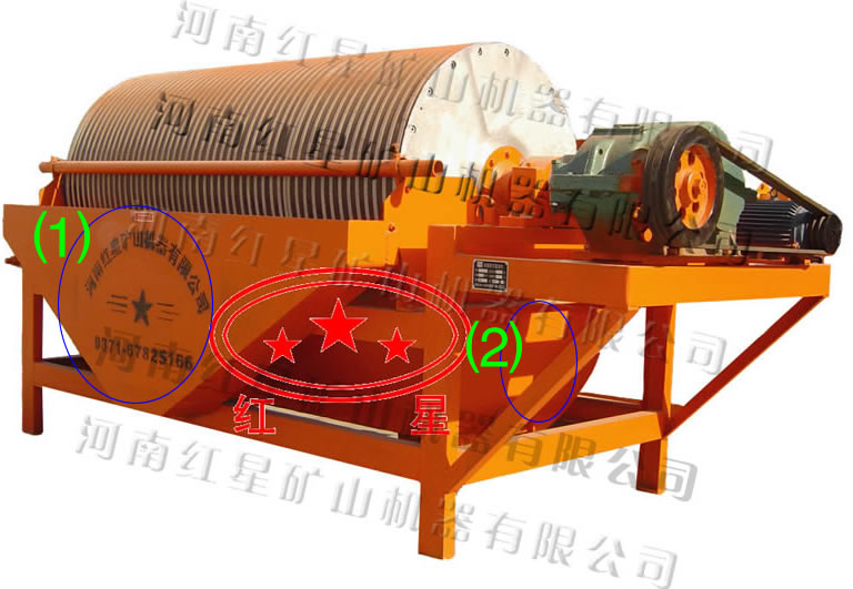 如果您在其他公司網(wǎng)站上看到與上面一樣的并且同一角度拍攝的磁選機產品圖片,首先看看上圖藍色橢圓標注(1)中的公司名稱(河南紅星礦山機器有限公司)和下面的聯(lián)系電話是否存在,如果這些信息不存在,則肯定是盜用我公司產品圖片的假冒公司;如果標注(1)模糊不清,則可以根據(jù)藍色橢圓標注(2)來判斷,這是拍攝照片時候的陽光留下的有力證據(jù)。